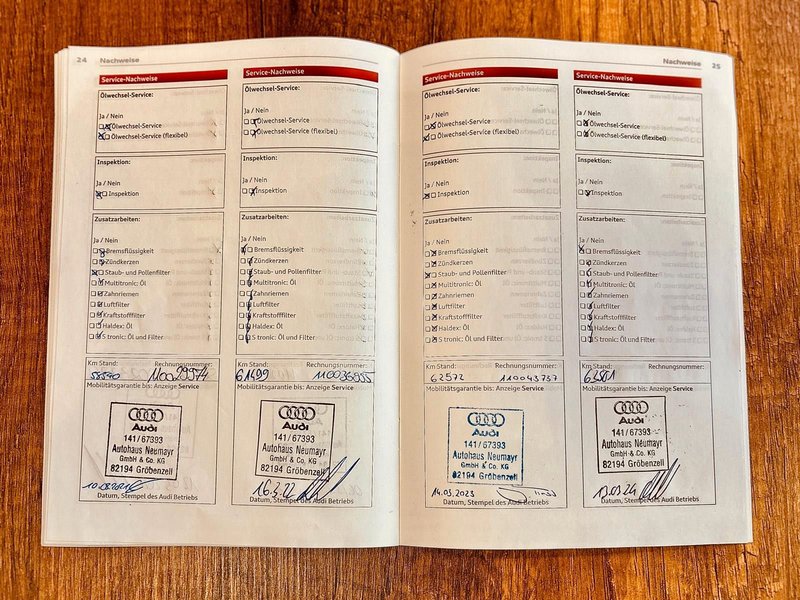 Ablage- und Gepäckraum-Paket, Außenspiegel elektr. verstell- und heizbar, beide, Dachhimmel Stoff, schwarz, Diebstahlsicherung für Räder (Felgenschlösser), Einparkhilfe vorn und hinten, akustisch und optisch mit selektiver Anzeige (APS Plus), Lendenwirbelstützen vorn, elektr. verstellbar, Metallic-Lackierung, Multi-Media-Interface MMI Navigation Plus mit MMI Touch, Panorama-Ausstelldach elektrisch, Reserverad als Notrad, Satz Adapterkabel Audi music interface, Sound-System DSP / Audi Sound-System, Universal-Schnittstelle Bluetooth, Wendematte Gepäckraum (variabel), Xenon-Scheinwerfer Plus (Abblend- und Fernlicht)