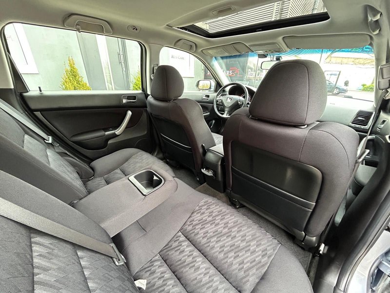 Airbag Fahrer-/Beifahrerseite, Audiobedienung am Lenkrad, Audiosystem: Sound-System Premium (Radio/CD-Player inkl. CD-Wechsler 6-fach integriert), Außenspiegel elektr. verstell- und heizbar, beide, Außentemperaturanzeige, Blinkleuchte in Außenspiegel integriert, Fahrassistenz-System: Notbrems-Assistent, Fensterheber elektrisch vorn + hinten, Innenraumfilter: Pollenfilter, Innenspiegel mit Abblendautomatik, Isofix-Aufnahmen für Kindersitz, Karosserie: 5-türig, Klimaautomatik, Kopf-Airbag-System, Lenksäule (Lenkrad) höhenverstellbar, LM-Felgen, Motor 2,4 Ltr. - 140 kW VTEC KAT, Rücksitz geteilt / klappbar, Schalt-/Wählhebelgriff Leder, Schiebe-/Hebedach elektrisch (Glas), Seitenairbag, Seitenschweller Wagenfarbe, Sitz vorn links elektr. verstellbar, Stoßfänger Wagenfarbe, Türgriffe außen verchromt, Verglasung getönt, Innenspiegel automatisch abblendend, Regensensor