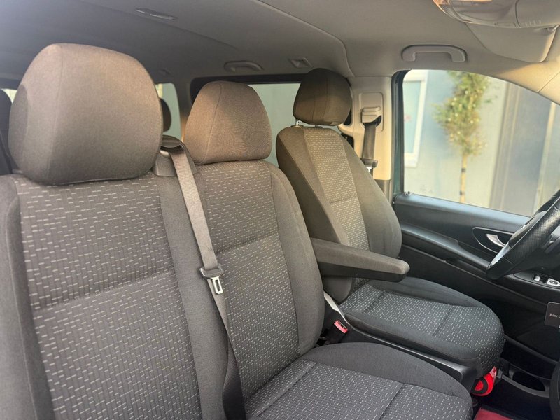 3. Bremsleuchte, Ablagenetz an Vordersitzlehne links, Adaptives Bremslicht, Airbag Beifahrerseite, Airbag Fahrerseite, Anfahrhilfe (Berganfahr-Assistent), Anzeige für Waschwasserstand, Armlehnen Fahrgastraum, Außenspiegel asphärisch, beide, Außenspiegel elektr. verstell- und heizbar, beide, Außentemperaturanzeige, Befestigungsschienen für Dachträger, BlueEfficiency-Paket, Bodenbelag: Fahrgastraum TPO, Bremssystem mit ABS+ASR, Dachverkleidung, Design- und Ausstattungslinie Edition, Edition, Einschaltautomatik für Fahrlicht, Einstiegsgriff hinten, Fahrassistenz-System: aktiver Park-Assistent, Fahrassistenz-System: Anfahr-Assistent (Berganfahr-Assistent), Fahrassistenz-System: Attention-Assist (Müdigkeitserkennungs-Sensor), Fenster im Lade-/FG-Raum: - elektr. ausstellbar, hinten links/rechts, Fenster im Lade-/FG-Raum: - feststehend, vorn links, Fenster im Lade-/FG-Raum: - feststehend, vorn rechts, Frontscheibe mit Scheibenantenne, Generator 250 A, Getriebe Automatik GTronic - (9-Stufen), Getränkehalter vorn, Gurtstraffer, Haltegriffe A-Säulen, Harnstofftank (AdBlue): 24 Ltr., Heckklappe mit Verglasung, Heckscheibe heizbar, Heckscheibenwischer, Innenverkleidung gehobene Ausführung, Karosserie/Aufbau: Kombi Standard, Karosserie/Aufbau: lang, Kindersicherung, Kombiinstrument mit Pixel-Matrix-Display, Komfort-Fahrwerk, Komfortbeleuchtung im Fahrgast-/Laderaum, Kommunikationsmodul (LTE) für digitale Dienste, Kopf-Airbag-System (Windowbag), Kopf-Schulter-Airbag (Thoraxbag) Fahrer-/Beifahrerseite, Lenkrad (Lenksäule mech. verstellbar), Lenkrad mit Multifunktion inkl. Reiserechner, Mercedes-Benz Notrufsystem, Modellpflege, Motor 2,0 Ltr. - 100 kW CDI KAT, Nebelschlussleuchte, PKW-Zulassung, PTC Heater, Radstand 3200 mm, Reifen 225/60 R16C 101/99 H, Reifendruck-Kontrollsystem, Rückspiegel innen, Scheibenwischer mit Regensensor, Schiebetür Lade-/Fahrgastraum rechts mit Verglasung, SCR-System (AdBlue-Technologie), Sicherheitsgurt-System mit Warnanlage (Fahrer-/Beifahrerseite), Sitzbezug / Polsterung: Stoff Caluma, Sitze im Fahrerhaus: Beifahrersitz Komfort, Sitze im Fahrerhaus: Fahrersitz heizbar, Sitze im Fahrerhaus: Fahrersitz Komfort, Sitze im Lade-/FG-Raum: 1.Reihe, 3er-Sitzbank Komfort, Sitze im Lade-/FG-Raum: 2.Reihe, 3er-Sitzbank Komfort, Sonnenblenden mit Spiegel (beleuchtet), Spiegel-Paket, Steckdosen (12V-Anschluß) im Lade-/Fahrgastraum, 2-fach, Umfeldleuchte in Heckklappe, Verglasung hinten abgedunkelt / Schwarzglas, Vlies-Batterie 92 Ah, Warmluftkanal zum Lade-/Fahrgastraum, Wartungsintervall-Anzeige Assyst, Wärmeschutzverglasung