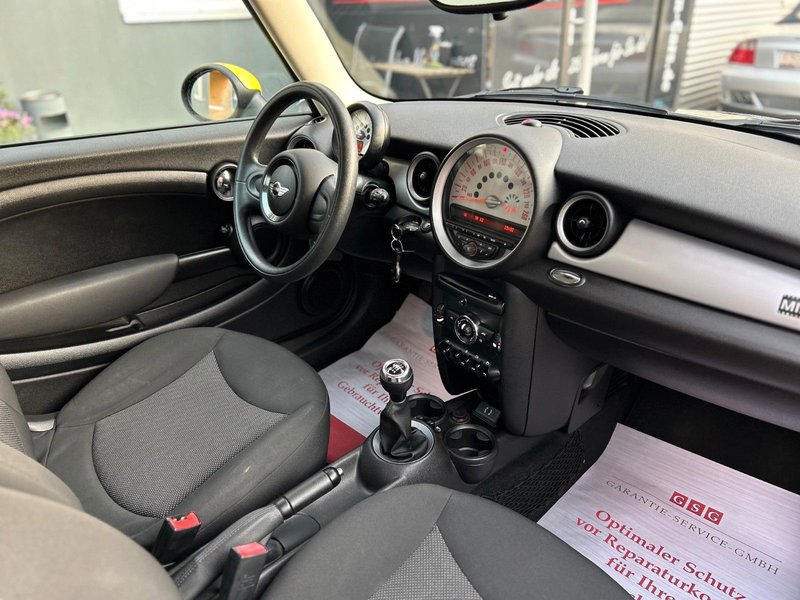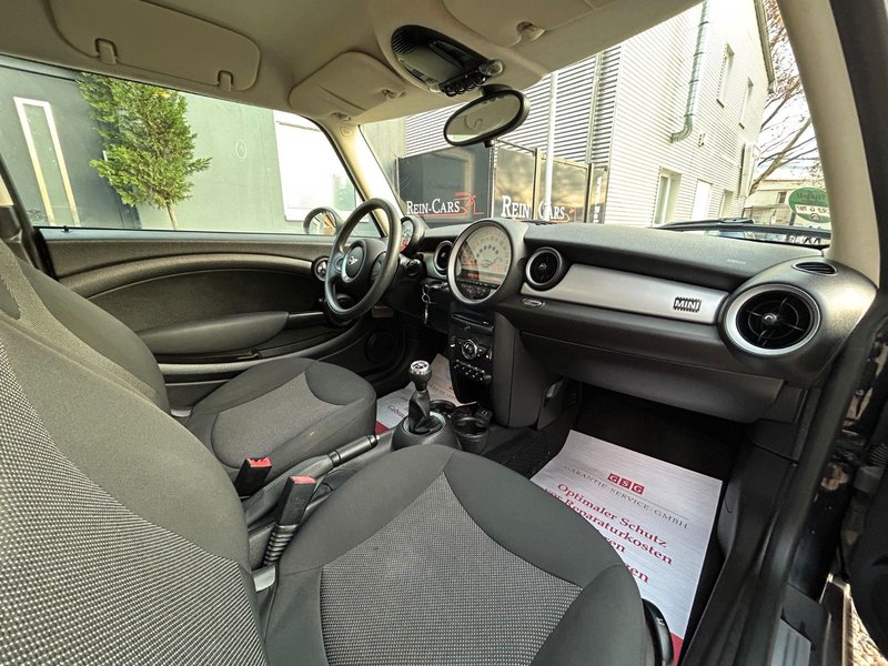 Airbag Fahrer-/Beifahrerseite, Audiosystem MINI CD (Radio/CD-Player), Auspuffanlage (1-Rohr-Anlage) mit Blende, Automatische Stabilitäts-Control und Traktion (ASC + T), AUX-IN-Anschluss (AUX-IN), Außenspiegel elektr. verstellbar, Außentemperaturanzeige, Bremsassistent, Bremsenergierückgewinnung, Dach Wagenfarbe, Dachspoiler, Drehzahlmesser, Elektron. Bremskraftverteiler, Getränkehalter vorn und hinten, Heckscheibenwischer, Innenausstattung: Interieur-Oberfläche White Silver, Isofix-Aufnahmen für Kindersitz an Rücksitz, Karosserie: 3-türig, Kopf-Airbag-System hinten, Kopf-Airbag-System vorn, Lenksäule (Lenkrad) mechan. verstellbar, Modellpflege, Motor 1,6 Ltr. - 55 kW 16V, Nebelschlussleuchte integriert, Nichtraucher-Paket, Reifen-Reparaturset (Mobility-Pack), Rücksitzlehne geteilt/klappbar, Schadstoffarm nach Abgasnorm Euro 6, Seitenairbag vorn, Sitz vorn links mechanisch höhenverstellbar, Sitzausstattung: 4-Sitzer, Sitzbezug / Polsterung: Stoff Cosmos, Sitze vorn höhenverstellbar, Wärmeschutzverglasung getönt, Zweiter Schlüssel mit Fernbedienung