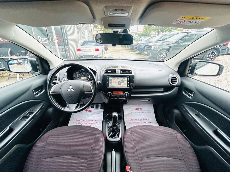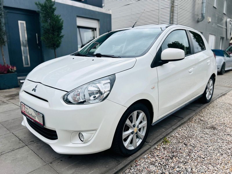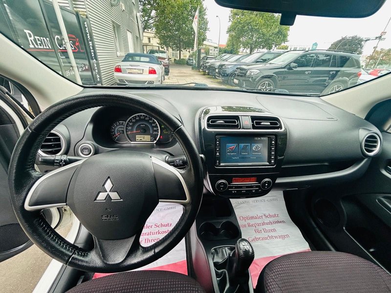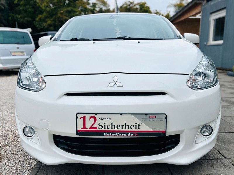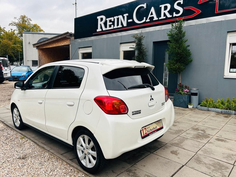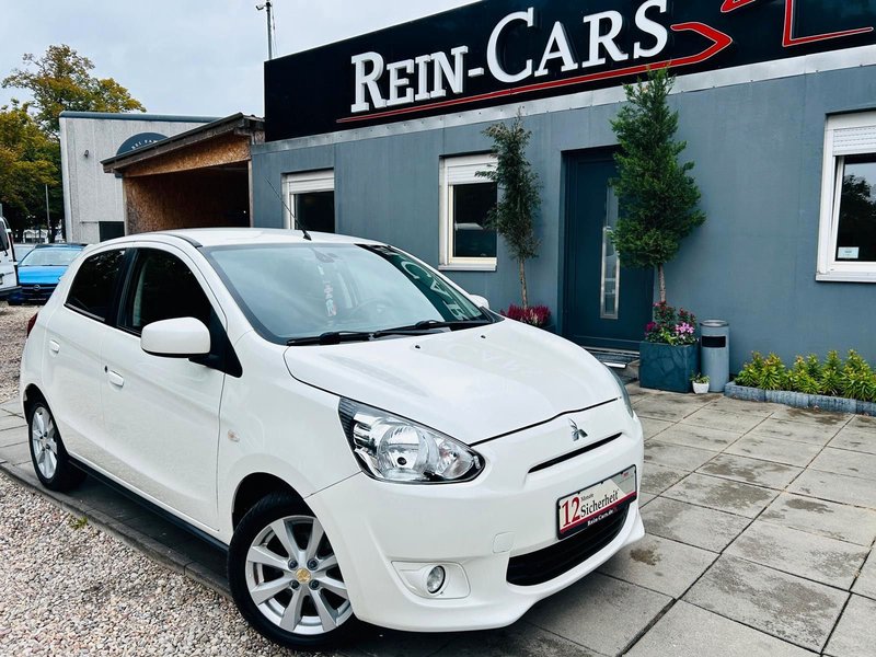 4 Lautsprecher, Airbag Beifahrerseite abschaltbar, Airbag Fahrer-/Beifahrerseite, AUX-IN-Anschluss (iPod / MP3-Player), Außenspiegel elektr. verstell- und heizbar, Außenspiegel Wagenfarbe, B-Säulen schwarz, Bluetooth-/Audio-Schnittstelle, Dachantenne, Dachspoiler mit 3. Bremsleuchte, Drehzahlmesser, Elektr. Bremskraftverteilung, Elektron. Stabilitäts- und Traktionskontrolle (MASC + MATC), Fahrassistenz-System: Notbrems-Assistent, Fensterheber elektrisch vorn + hinten, Freisprecheinrichtung Bluetooth, Getränkehalter vorn und hinten, Gurtstraffer vorn, Heckscheibe abgedunkelt, Heckscheibe heizbar, Heckscheibenwischer, Innen-/ Außentemperaturanzeige, Innenraumfilter: Pollenfilter, Isofix-Aufnahmen für Kindersitz, Karosserie: 5-türig, Klimaautomatik, Kopf-Airbag-System hinten, Kopf-Airbag-System vorn, Kopfstützen vorn, Laderaumabdeckung, Lenksäule (Lenkrad) höhenverstellbar, Liegesitz-Funktion, Sitze vorn, LM-Felgen, Mitsubishi Multi Entertainment-System MMES (Radio/CD, Navigation, Touchscreen), Mittelkonsole mit Ablagefach, Modellvariante CO2-optimiert (ClearTec), Motor 1,2 Ltr. - 59 kW, Multifunktionsanzeige, Nebelschlussleuchte, Rücksitz geteilt / klappbar, Schadstoffarm nach Abgasnorm Euro 5, Scheinwerfer Klarglas, Seitenairbag vorn, Seitenaufprallschutz, Sicherheitsgurte höhenverstellbar, Sitz vorn links höhenverstellbar, Sitzausstattung: 5-Sitzer, Sitzbezug / Polsterung: Stoff, Start-Stop-Knopf, Start/Stop-Anlage (ASG), Steckdose (12V-Anschluß) in Mittelarmlehne / Mittelkonsole, Stoßfänger Wagenfarbe, Türgriffe außen Wagenfarbe, USB-/Audio-Schnittstelle, Verglasung hinten abgedunkelt, Wärmeschutzverglasung getönt