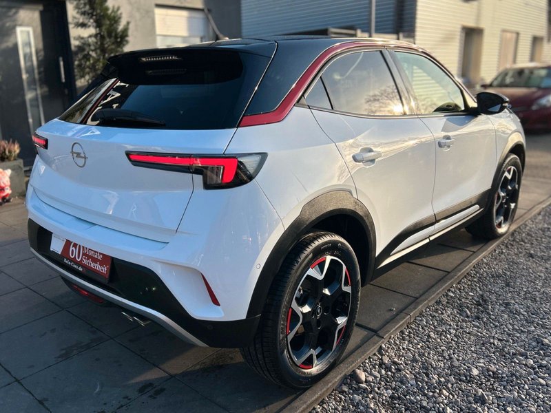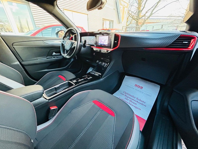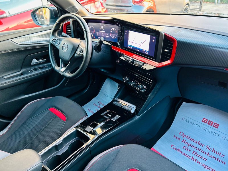 Außenspiegel elektr. verstell- und heizbar, elektr. anklappbar, Bluetooth Audio-Streaming, DAB-Tuner (Radioempfang digital), Dach Diamant-Schwarz, Dachhimmel schwarz, Dachspoiler, Elektron. Stabilitäts-Programm Plus (ESP), Fahrassistenz-Paket: Active Drive Assist, Fahrassistenz-System: Fernlichtassistent, Fahrassistenz-System: Müdigkeitserkennungs-Sensor, Fahrassistenz-System: Verkehrszeichenerkennung, Fahrzeugschlüssel (2) beide klappbar, Feststellbremse elektrisch, Freisprecheinrichtung Bluetooth, Getriebe Automatik - mit Start-/Stop (8-Stufen), Heckleuchten LED, Karosserie: 5-türig, Klimaautomatik, Kopf-Airbag-System, Kühlergrill, Opel Vizor, Rahmen in Hochglanz-Schwarz, LM-Felgen, Motor 1,2 Ltr. - 96 kW, MP3-Schnittstelle für Mobiltelefon/Handy, Nebelscheinwerfer LED, Otto-Partikelfilter (OPF), Radstand 2557 mm, Reifen-Reparaturkit, Schadstoffarm nach Abgasnorm Euro 6d, Seitenairbag vorn, Sicht-Paket, Sitzbezug / Polsterung: Stoff / Ledernachbildung, Start/Stop-Anlage, Wärmeschutzverglasung, Wärmeschutzverglasung hinten abgedunkelt (Solar-Protect)
